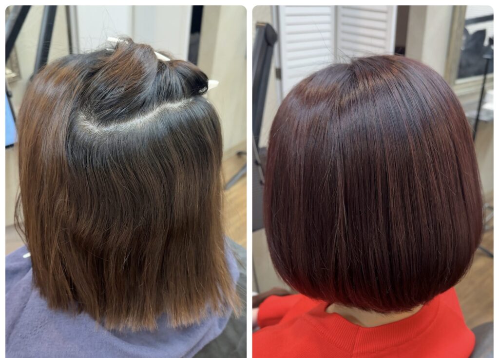 今回はカット+カラー+髪質改善縮毛矯正で施術時間は約3時間30分。