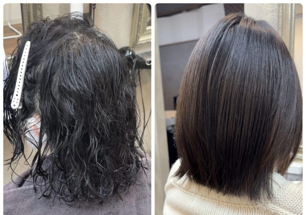新規のお客様がご来店くださいました。 前回の縮毛矯正から約半年ほど経っていて、中間部分にもしっかりとした癖が戻ってきていました。髪は柔らかくて繊細な質感なのに、癖は強めというデリケートなタイプ。趣味で海に行くことが多かったり、お仕事柄しっ... -
